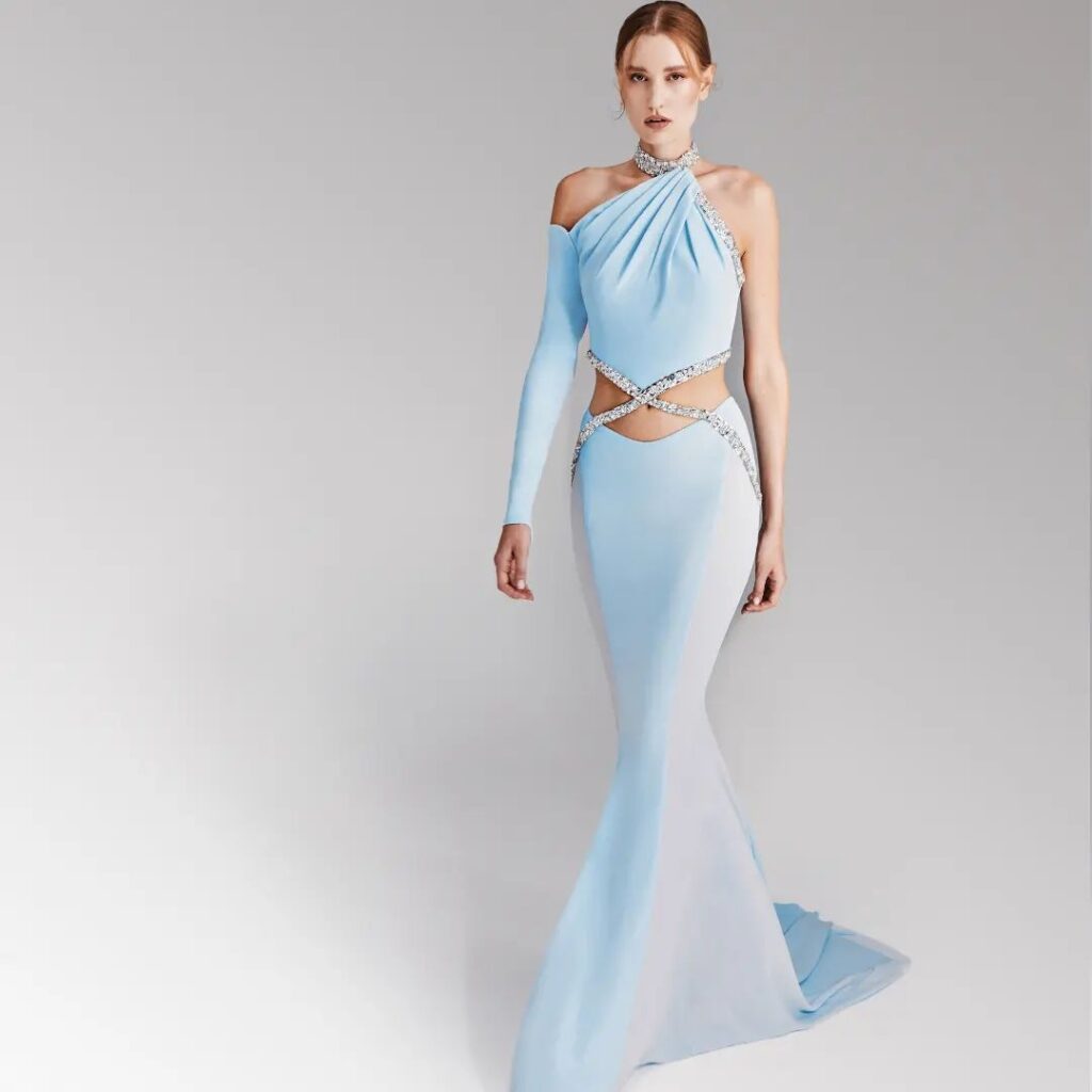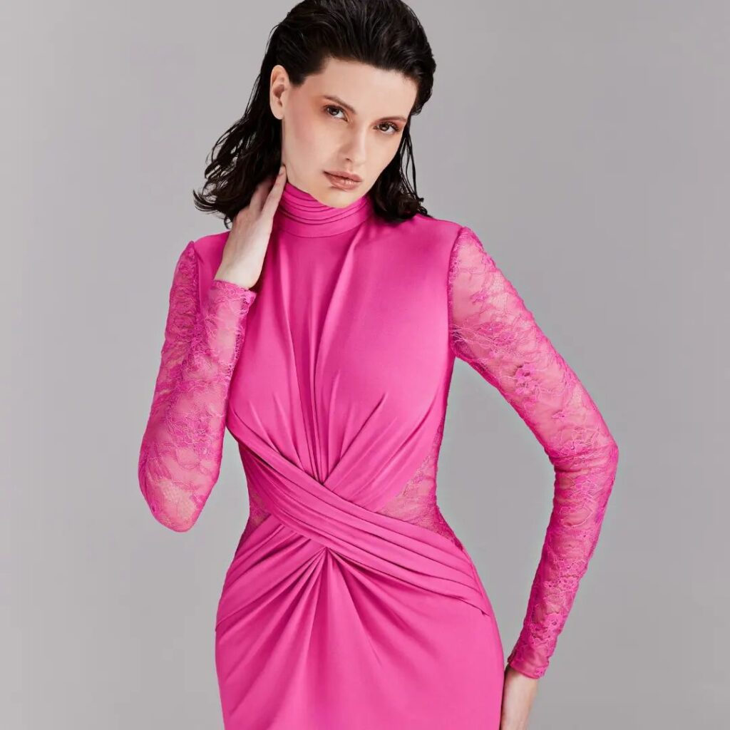 She steps into her space in a jersey fitted dress with multiple cut-outs, Her edginess is all for the sheerness & playful transparencies, She goes for the shimmers, everything that glows. Could pull out a sequined dress on a bright day, or dark night. She loves a draping game & has a sensual taste in the refined mix of materials, She screams fierceness in bright yellow, deep fuchsia, hues of blues, nude earthy tones, & pure white.