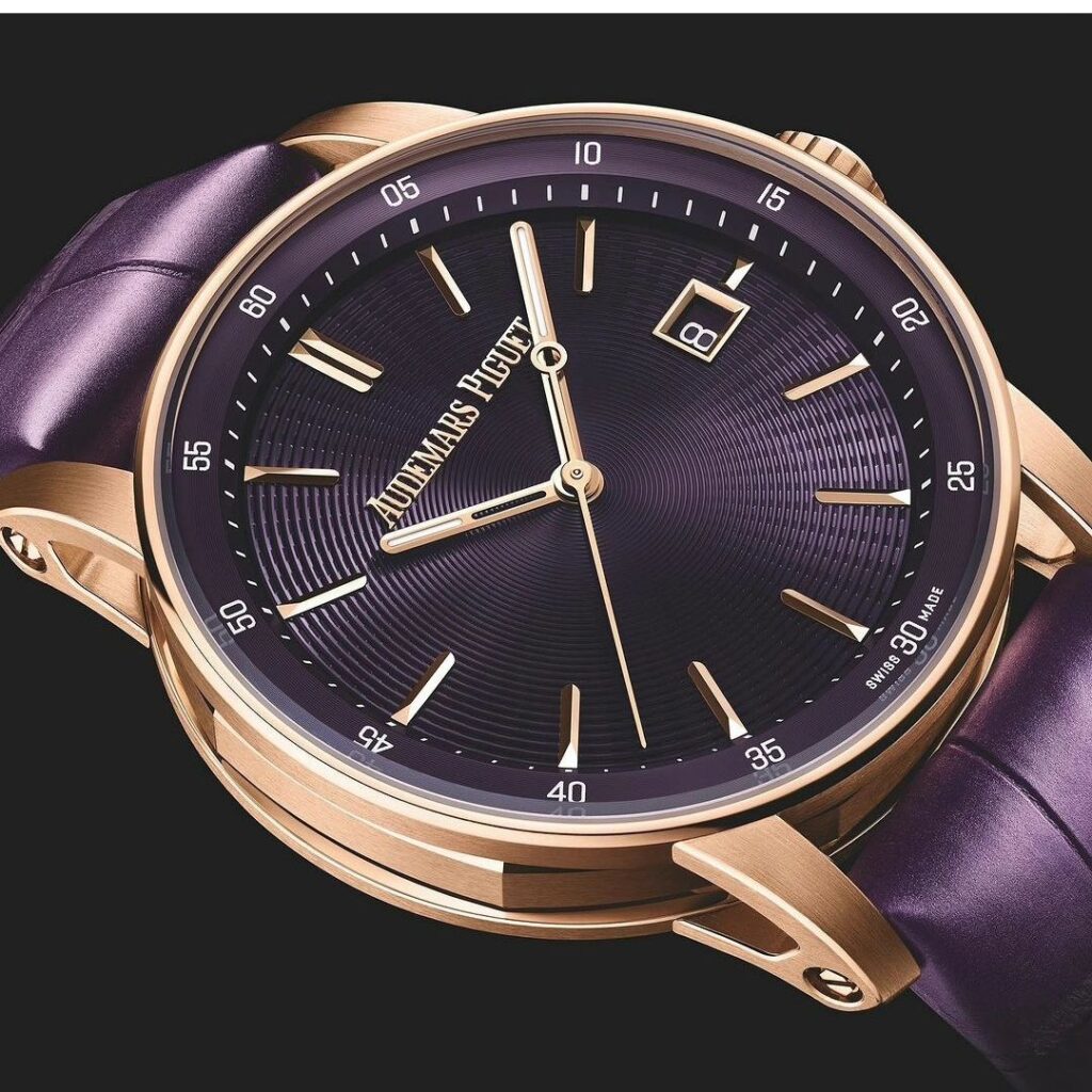 When it comes to luxury watches, Audemars Piguet knows no bounds. Introducing the latest addition to the 11.59 collection, featuring a mesmerizing purple and chic ivory design. Make a confident statement with this impeccable timepiece.