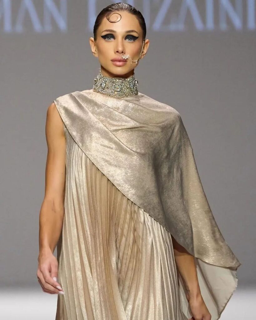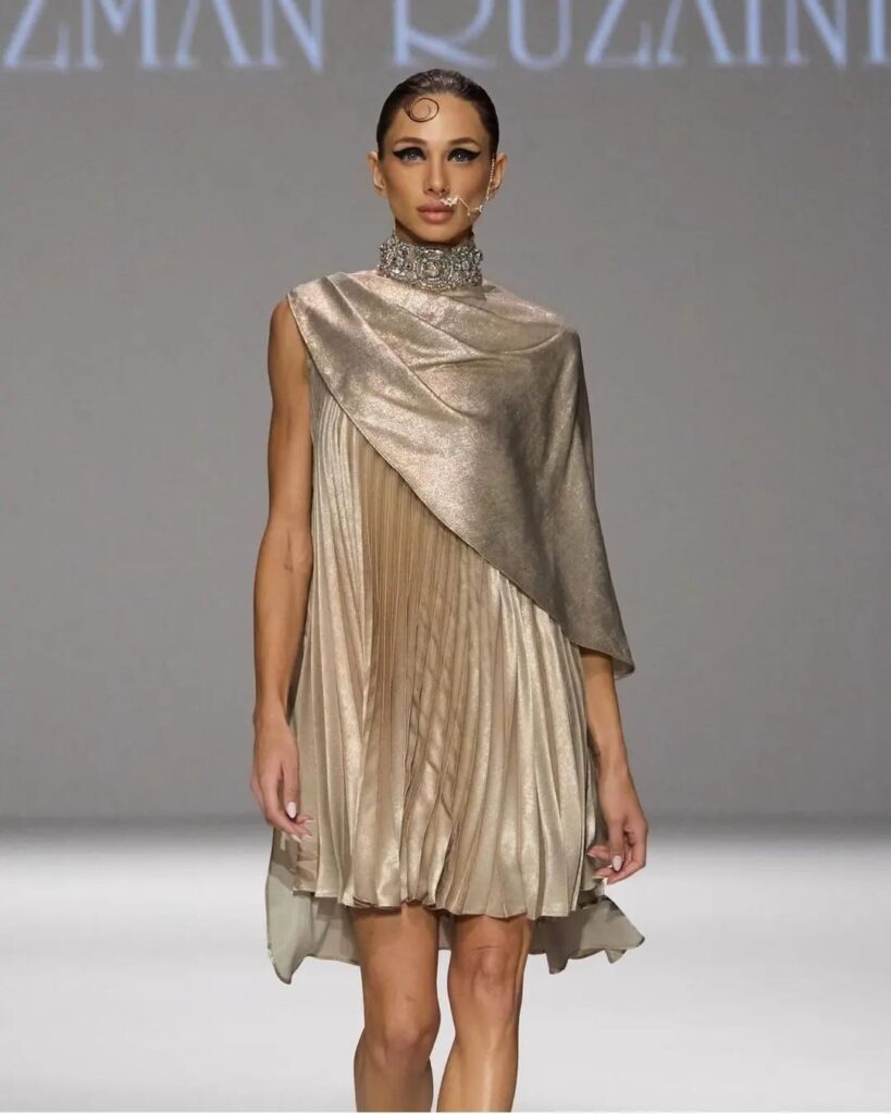 Lebanese public figure and #dubaiblingnetflix star Loujain Adada 🌟 walking for @rizmanruzaini FW24 collection at #dubaifashionweek