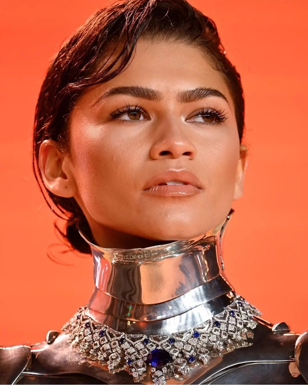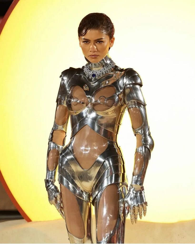 ‘STUNNED’ Zendaya breaks boundaries with this vintage #mugler look from 1995 for the movie premiere of Dune part two in London! And let’s not forget the magnificent blvgari necklace added to her outfit!