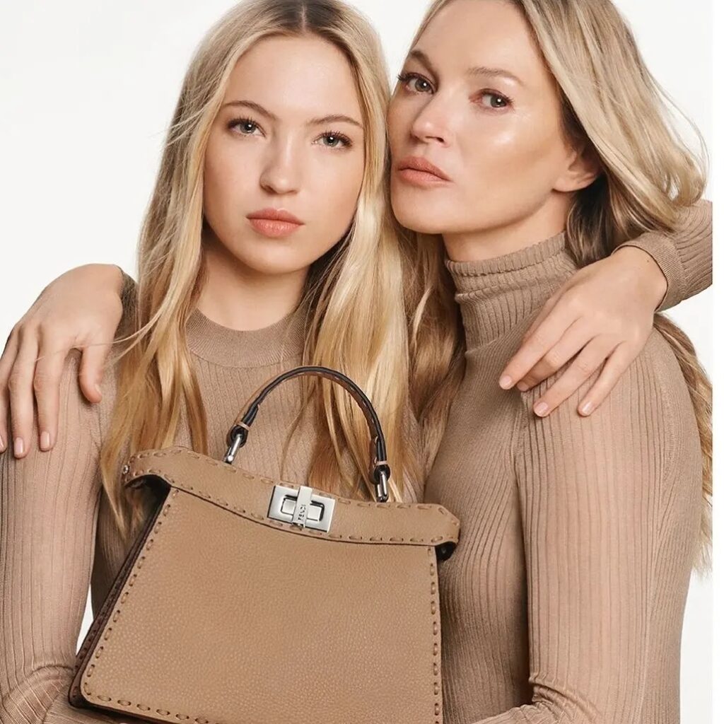The ultimate mother-daughter duo, Kate and Lila Grace Moss, take on the luxury fashion world as the faces of Fendi’s Peekaboo campaign.