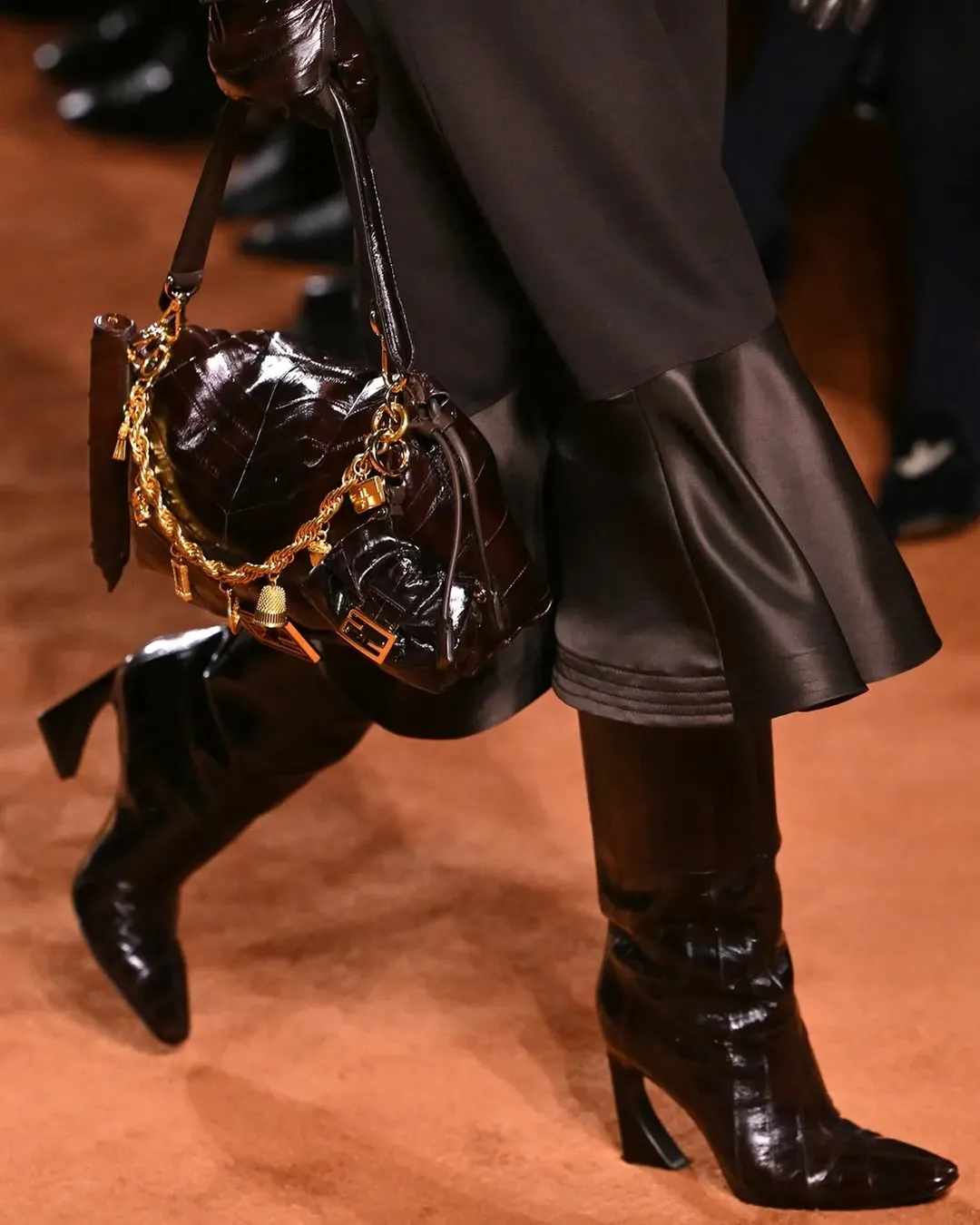 Silvia Venturini Fendi, the artistic director of accessories and menswear, curated the Autumn/Winter 2025 collection, marking a significant moment as she designed womenswear following Kim Jones’ departure. The show commenced with a personal touch: her seven-year-old grandsons, Dardo and Tazio Delettrez Fendi, opened the grand doors, paying homage to the family’s legacy.