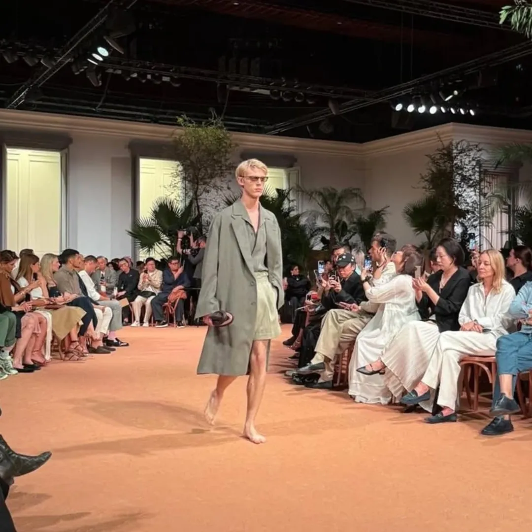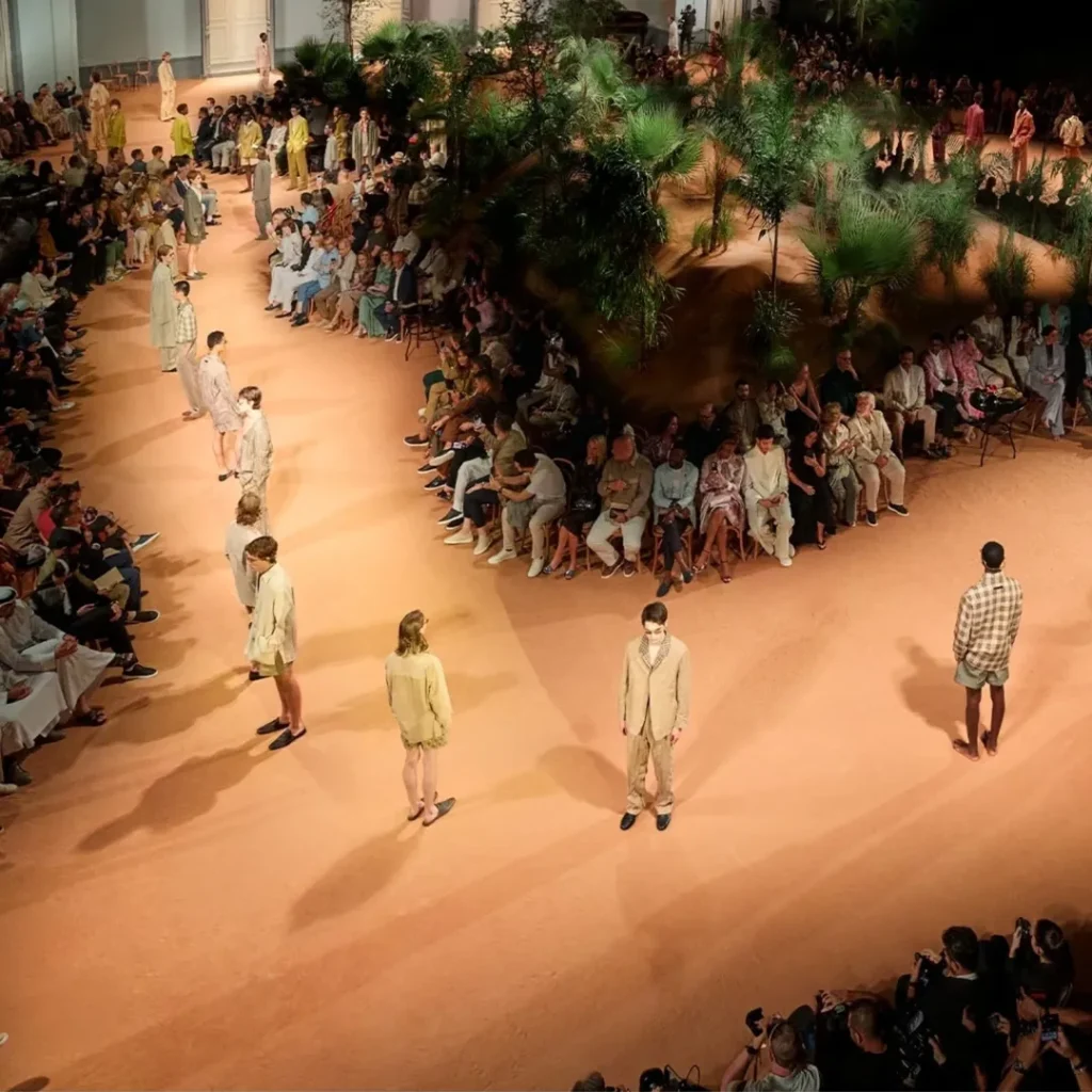 In a historic move for the house, Zegna took its runway show beyond Italian borders for the very first time—choosing the vibrant and ever-evolving city of Dubai as its stage. Last night, the iconic Dubai Opera was transformed into an ethereal desert-inspired oasis, where golden lighting bathed the space, palm trees swayed gently, and sculpted sand dunes set the tone for a show that celebrated elegance in its purest form.