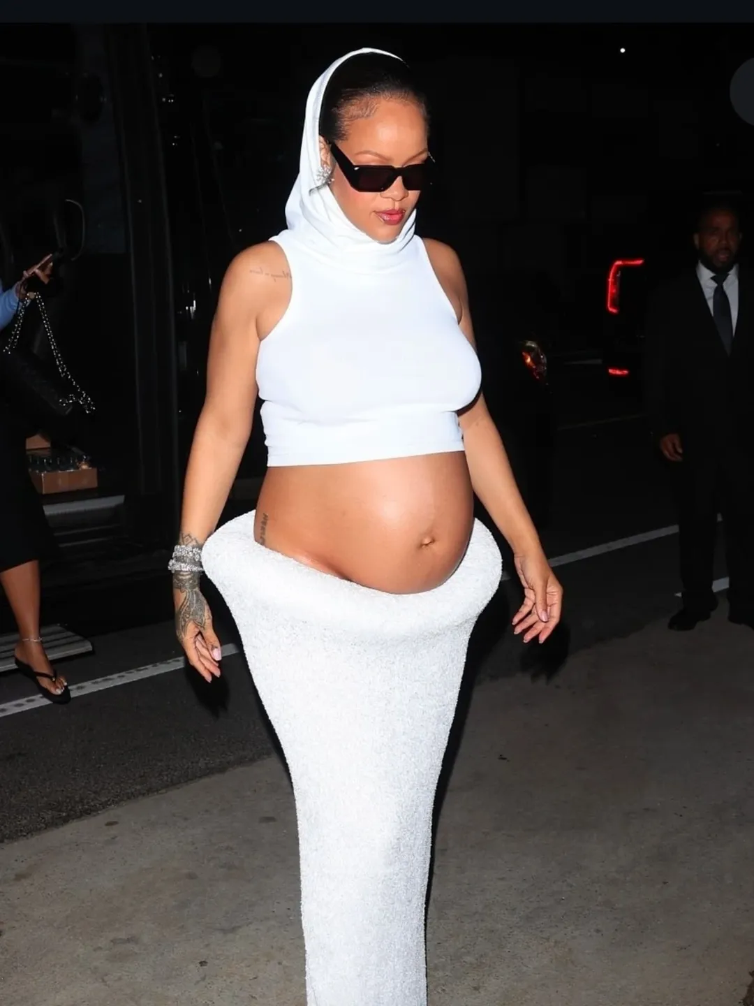It’s pure edge meets elegance. Maison Alaïa’s architectural tailoring fits Rihanna’s persona perfectly — confident, fearless, and fashion-forward. Whether it’s the sharp silhouette or the way she owns every detail, it’s a standout moment that blends modern couture with attitude.