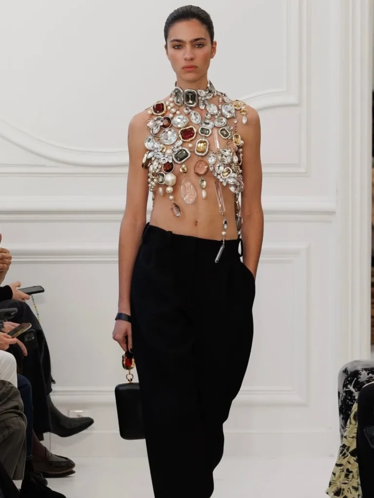 When jewels become the top: Jenna Ortega stunned at the Emmys in a gemstone-top and slit skirt from Givenchy, channeling old Hollywood camp and modern edge! Yes we do love it.