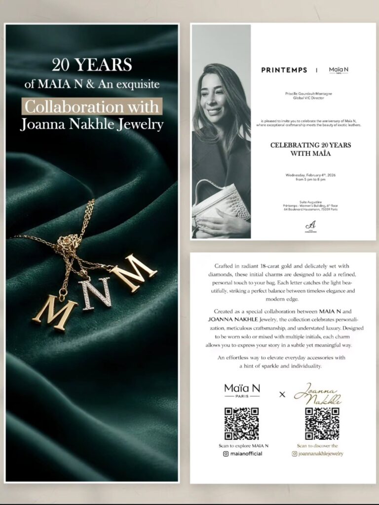 Together, this union of artisanal worlds — Maïa N’s masterful leatherwork and Joanna Nakhle’s bespoke jewelry artistry — redefines the luxury lifestyle, turning everyday accessories into stories of heritage, sophistication, and radiant personal expression. 🇫🇷