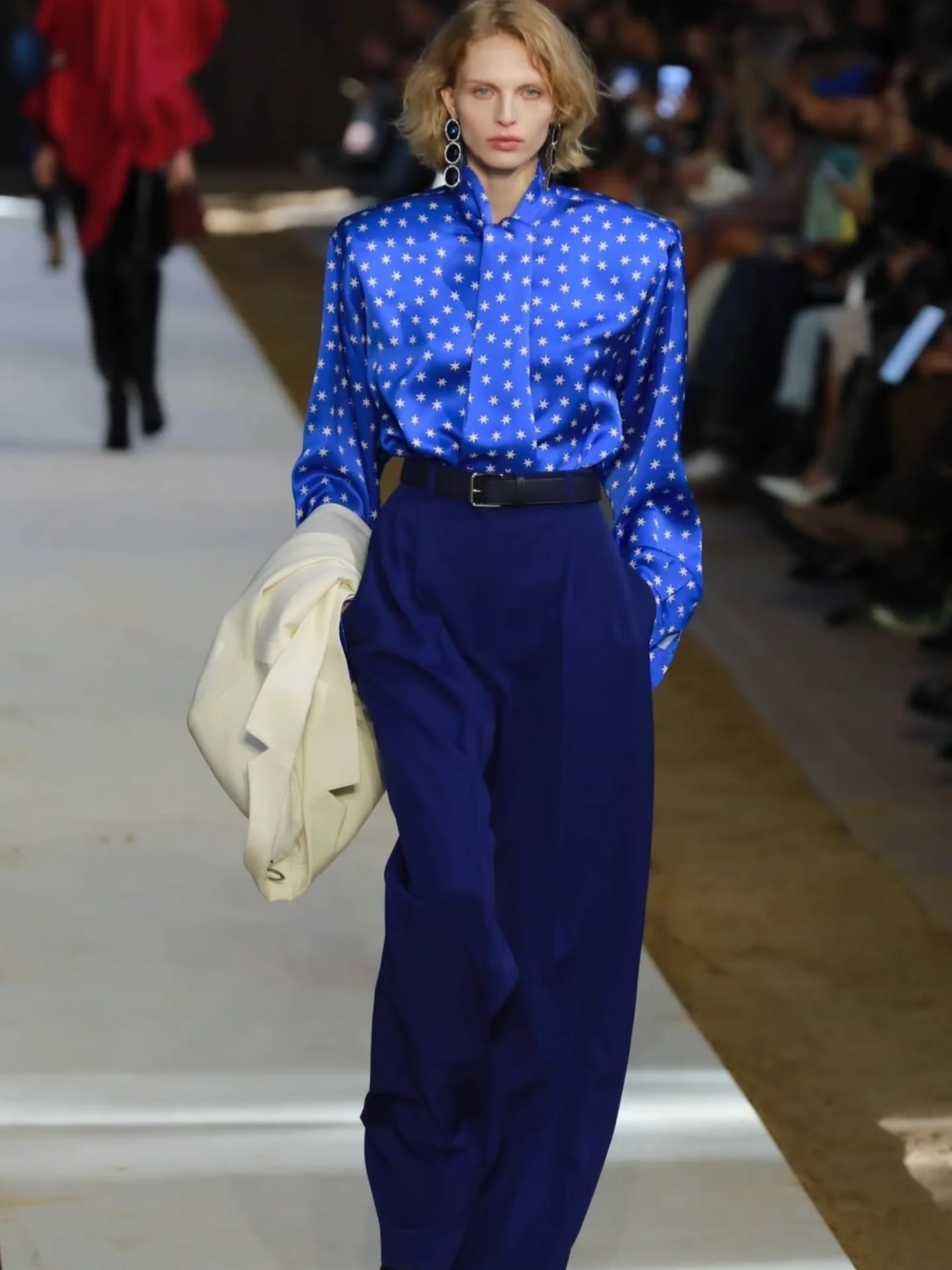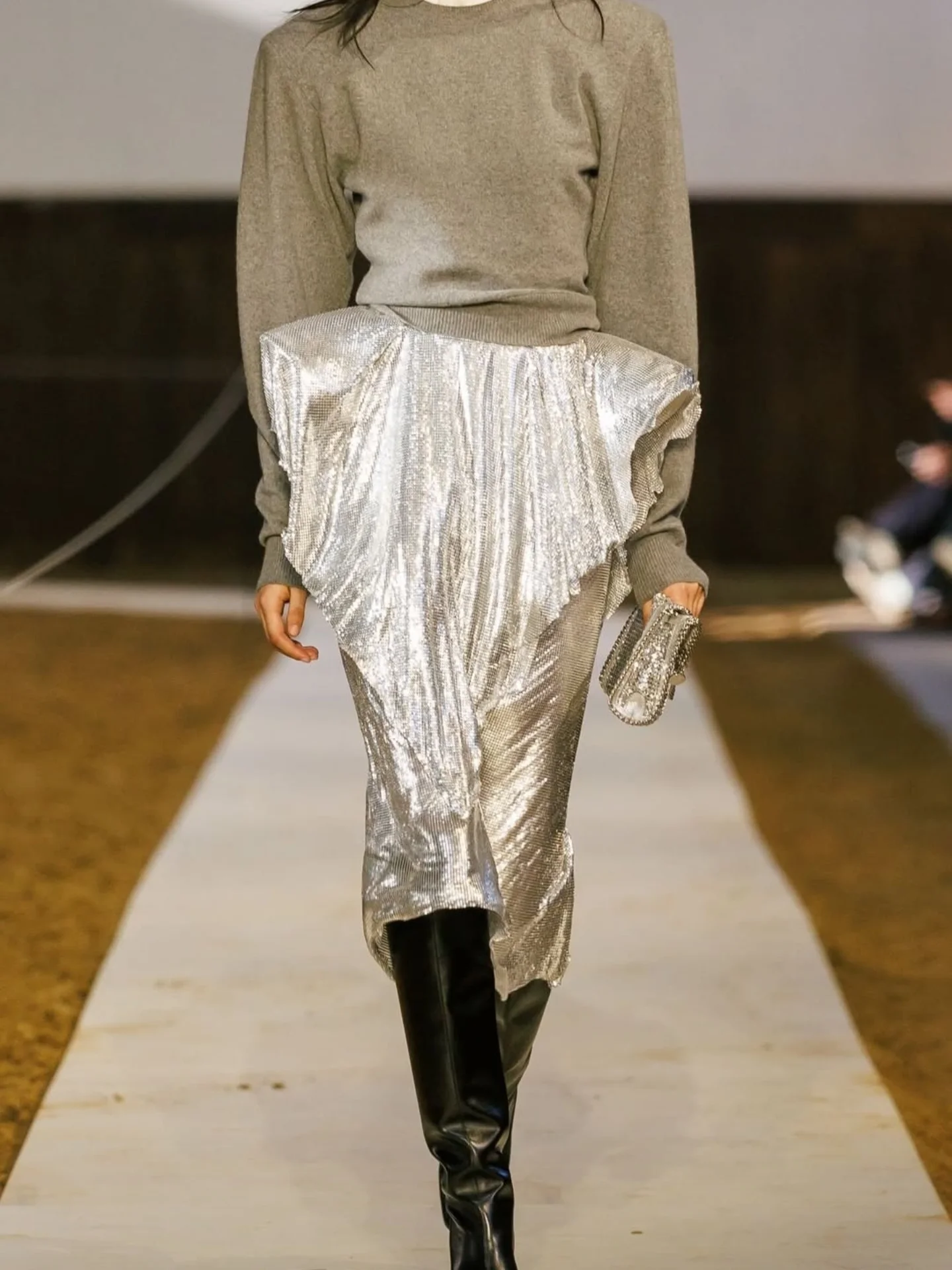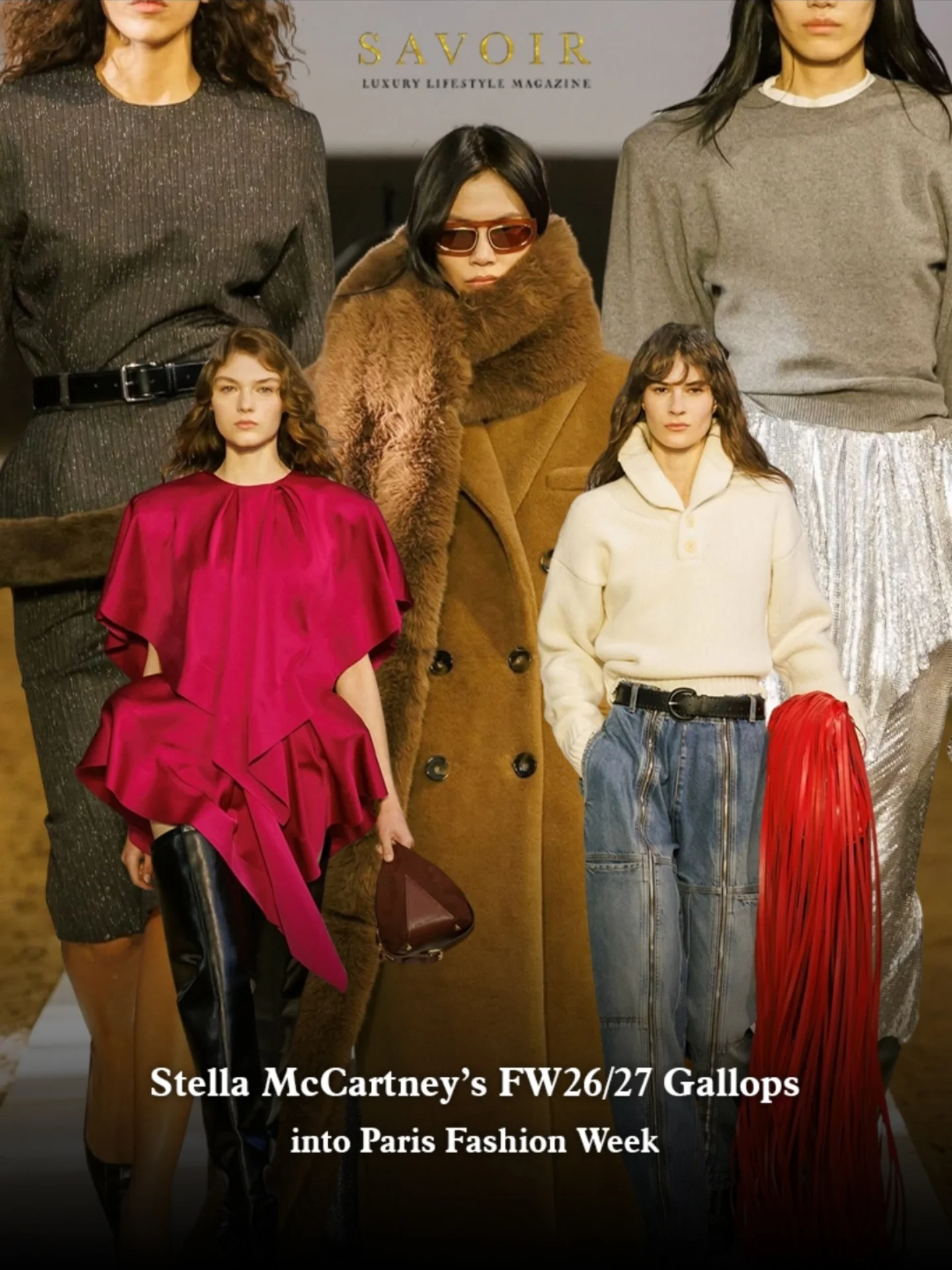 Inside a Parisian stable, Stella McCartney unveiled her Autumn–Winter 2026–2027 collection during Paris Fashion Week—a powerful reminder of her enduring bond with nature and animals. The setting perfectly echoed the collection’s spirit, where sharp tailoring, structured outerwear, and fluid silhouettes met subtle equestrian codes.