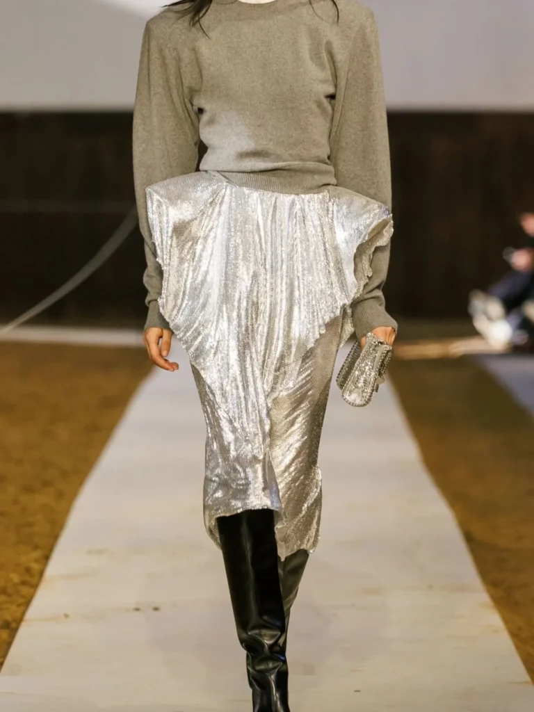 True to the house’s DNA, the pieces celebrated sustainable innovation, with cruelty-free materials and modern craftsmanship shaping a wardrobe that felt both refined and responsible. From sleek coats to effortlessly chic separates, the collection captured McCartney’s vision of fashion that moves forward—ethically, elegantly, and with purpose.