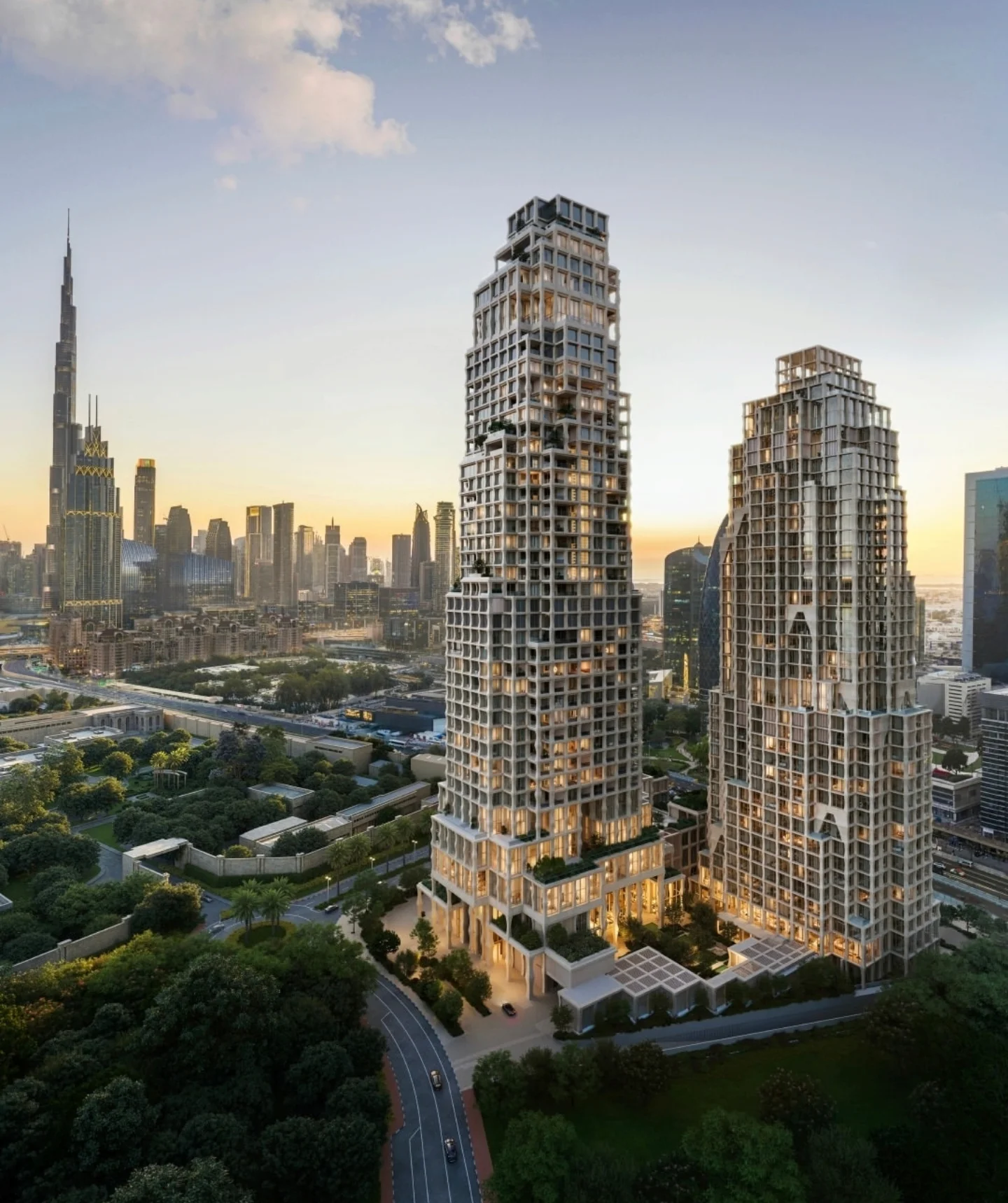 Framed by uninterrupted views of the iconic Burj Khalifa, these residences—visioned by Pritzker Prize-winning architects Herzog & de Meuron—redefine contemporary luxury through a seamless blend of sculptural design, warm minimalism, and subtle Arabian influence.